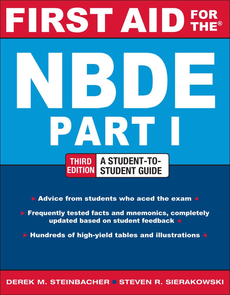 One-stop NBDE preparation -- written by students who aced the exam First Aid for the NBDE Part 1, 3e is a concise review for the exam, containing hundreds of high-yield facts and mnemonics, and more than 200 photos and illustrations. The book offers what-to-study guidance for the most frequently tested topics in anatomic sciences, biochemistry and physiology, microbiology and pathology, and dental anatomy and occlusion. Readers will also find confidence-building, performance-enhancing test-taking strategies. Features Written by students who have personally experienced the exam,and reviewed by top dental school faculty and practitioners Full-color insert of essential images Completely revised based on the most recent version of the exam.